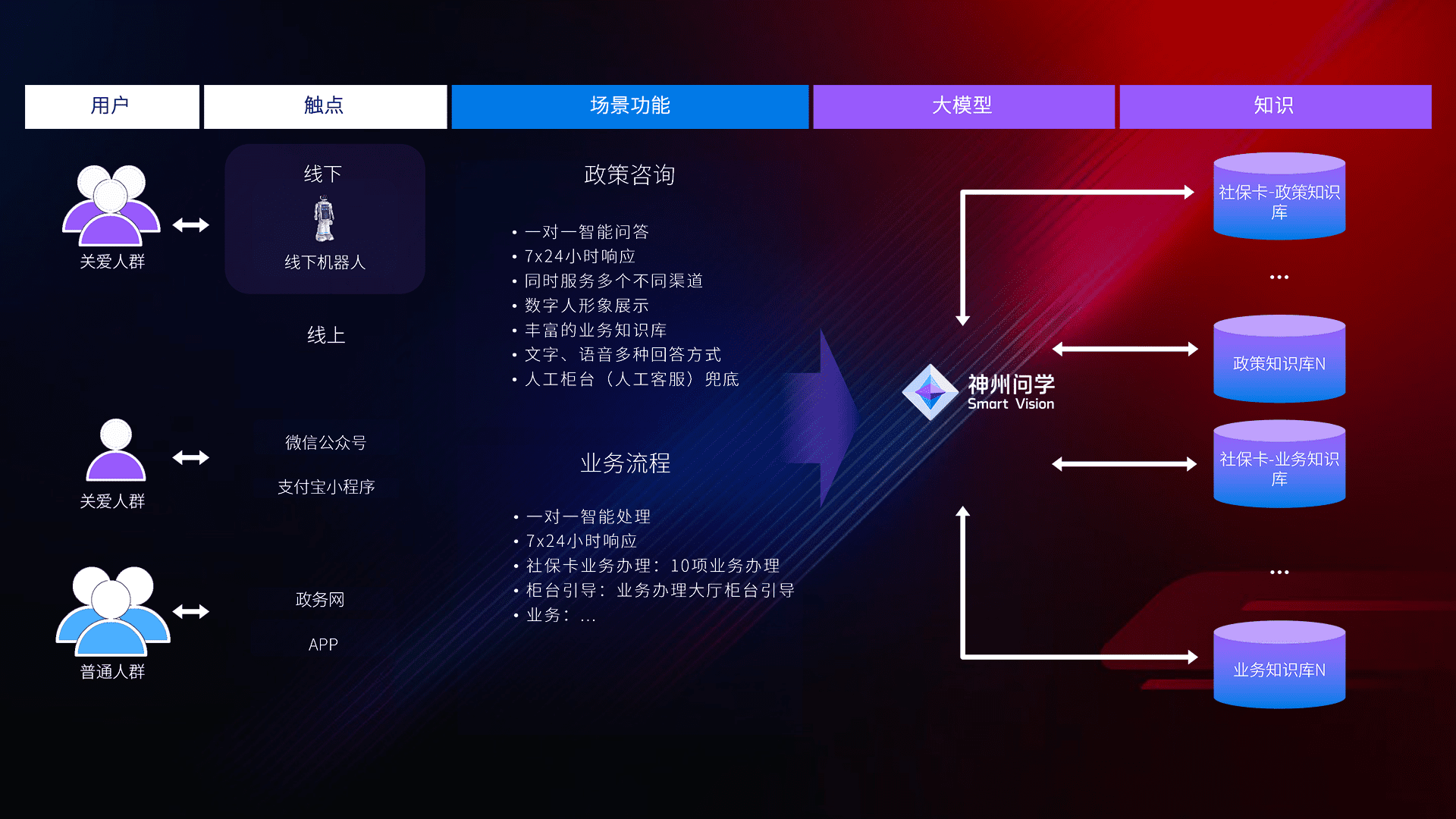 • 线上线下全覆盖:线上提供微信公众号、、支付宝小程序、、、、政务网、、app多种渠道,,与线下机器人形成完整服务体系。。。